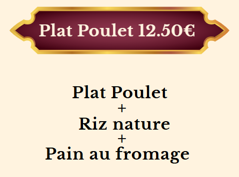 POULET+NAAN FROMAGE +RIZ nature