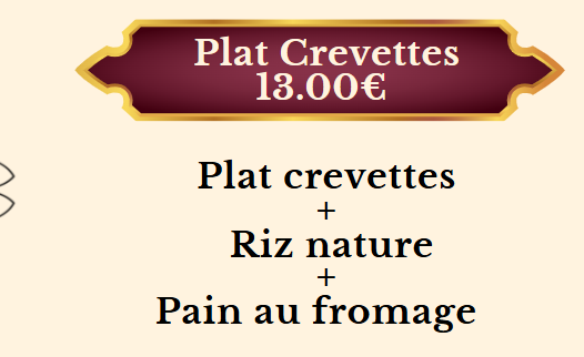 CREVETTES MASALA (crevettes au curry) …............................................................................................13,00€