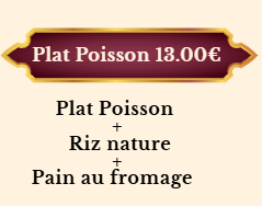 POISSON MADRAS (curry de saumon – sauce relevée) …....................………………………………………………13,90€
