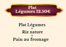 LÉGUMES+NAAN FROMAGE + RIZ nature